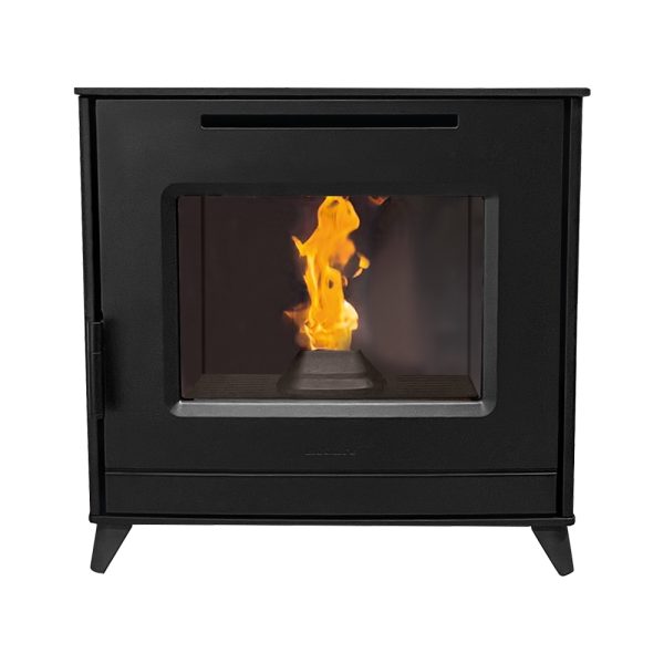 The Elcofire Strata is a small free standing pellet boiler stove with fan assisted heat to the room for central heating with an enhanced thermal exchanger and cast iron door, ensuring maximum heat transfer while minimizing fuel consumption.
