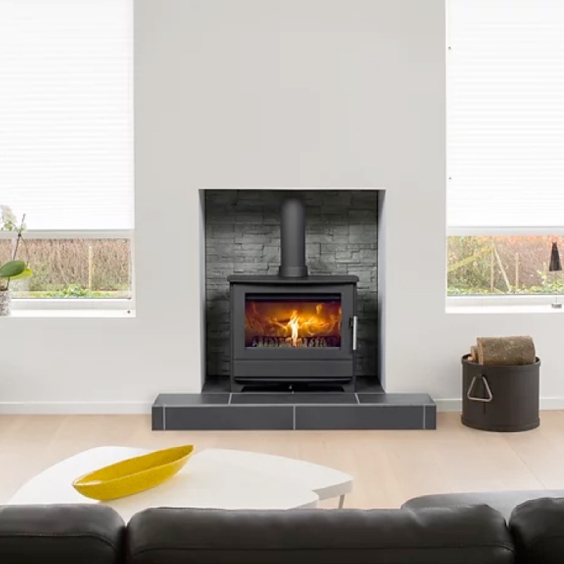 Features include a single lever air control to give an accurate and precise control of the fire. Built -in clean burn combustion technology, secondary air wash to keep the glass spotlessly clean, riddling cast iron grate.